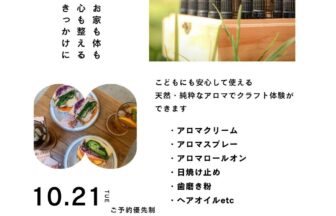お家も体も心も整えるきっかけに!予約優先ですが、ふらっとのご参加も大歓迎!!こどもにも安心して使えるオーガニックアロ…