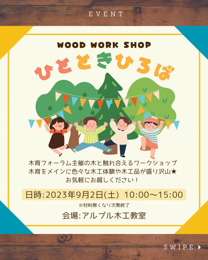 アルブル木工教室が応援していて協力している木育活動「ひとときひろば」