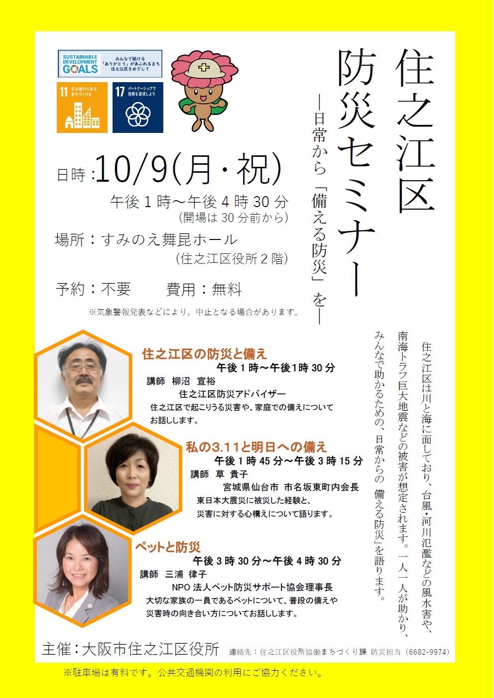 住之江区で起こり得る災害や対策などについて知り、 防災に触れ合うことで、平時からの備えや防災意識を向上させましょう