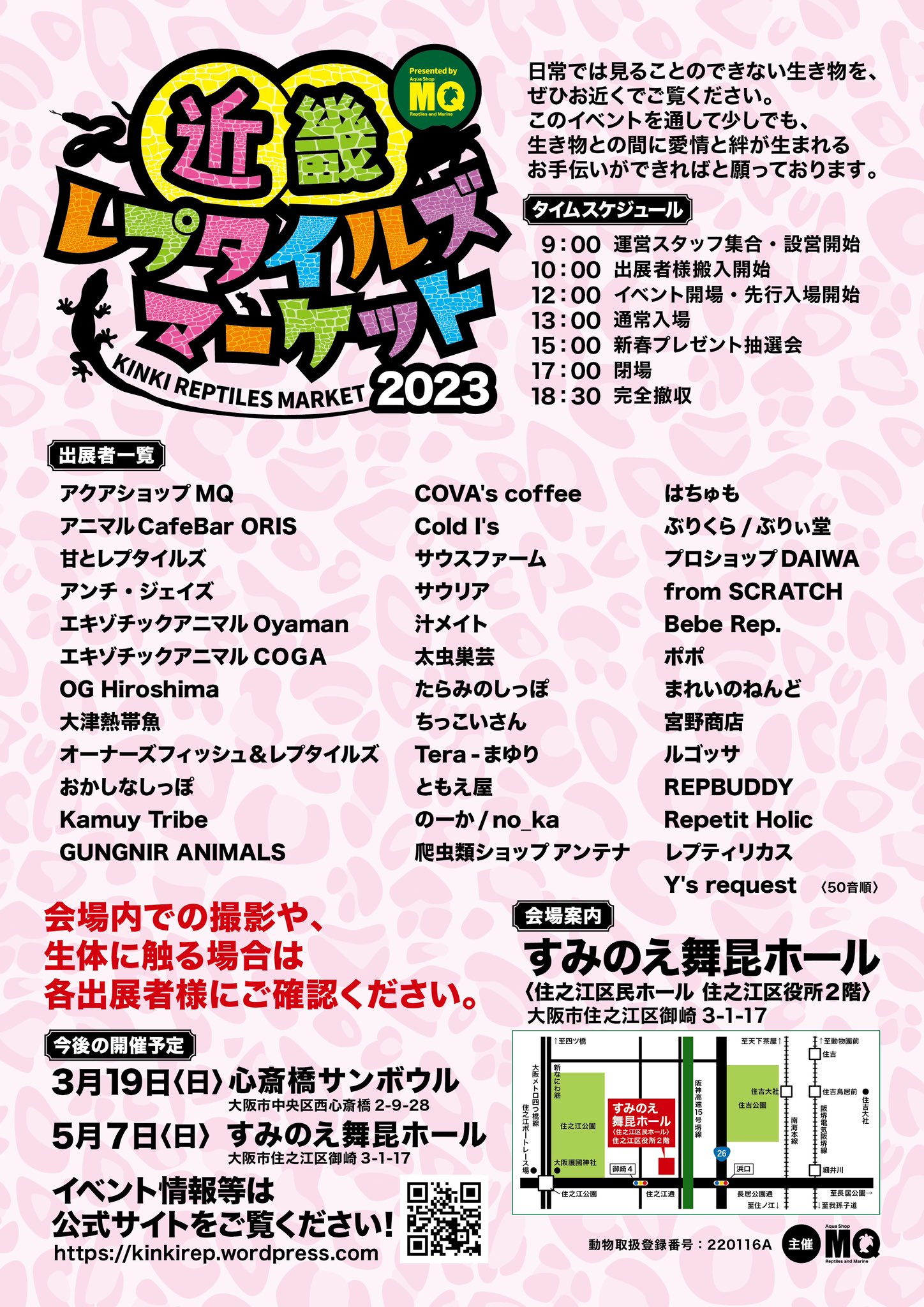 爬虫類イベント『近畿レプ』主催。 トカゲや蛇といった爬虫類、ハムスターやハリネズミ等の小動物の展示会。 気にいった生体を購入することもできます。爬虫類グッズや抽選会イベントも開催されます。 日常では見られない爬虫類や小動物を間近で見ませんか?