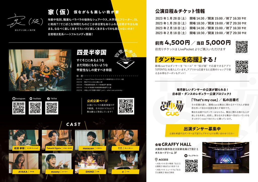 毎月新しいダンサーの公演が観られる! 日本初・ダンスのレギュラー公演プロジェクト“踊場cue” 四畳半帝国による 日常覗き見系ハートフルコメディ 家(仮)− 仮ながらも楽しい我が家 −