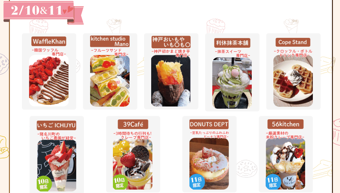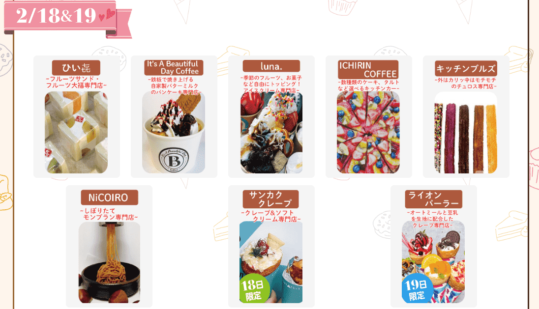 話題のサンリオクレープや韓国で話題のココマカロンなど、 トレンドのスイーツや人気ショップが4日間で19店舗もやってくる! 女性限定スピードくじも開催されます。