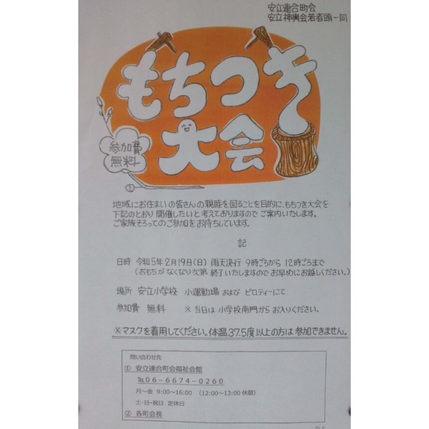 住之江区安立にてお餅つき大会が開催されます!