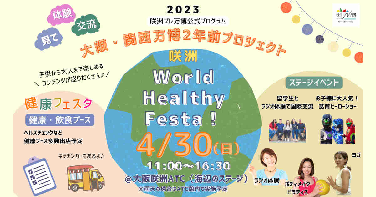 見て!体験!交流!大阪・関西万博の開催2年前プロジェクト!全世代・全世界をつなぐ健康イベントです。
