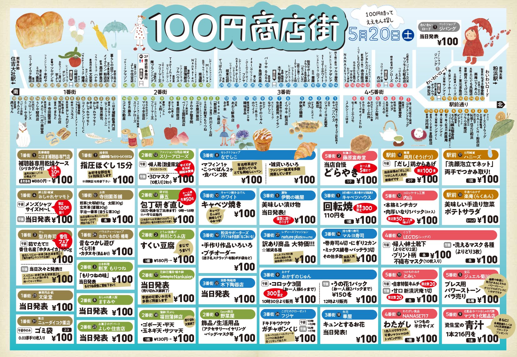 粉浜商店街の各店舗で100円で買える商品やポッキリ価格な商品が買えるという大変お得なイベントです!
