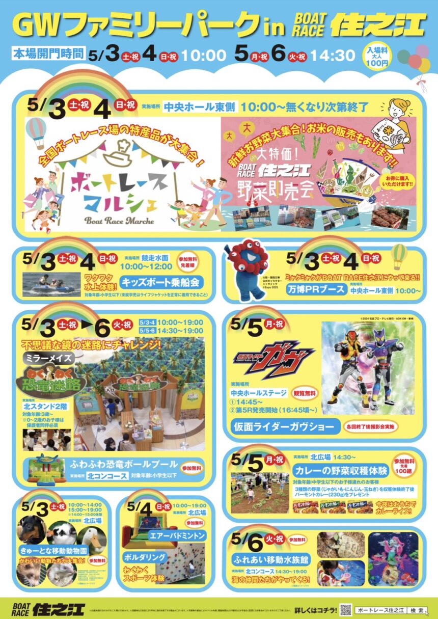 2025年5月3日(土)~6日(火・祝)にGWファミリーパークinBOATRACE住之江を実施します!!