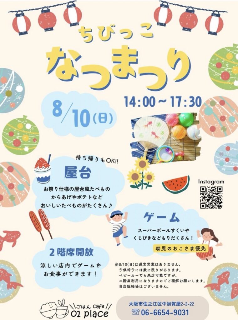 2025年8月10日(日)cafe01place ワンプレイスでちびっこ夏祭りが開催!!