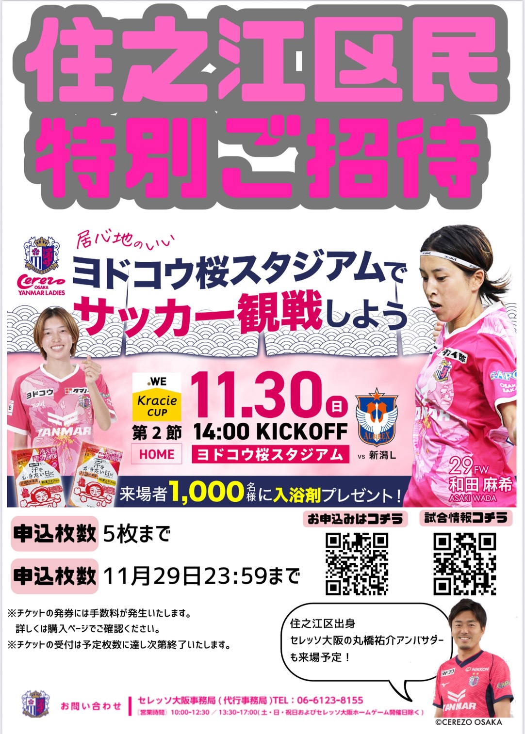 住之江区とセレッソ大阪ヤンマーレディースとの連携企画「区民応援デー」の開催!!