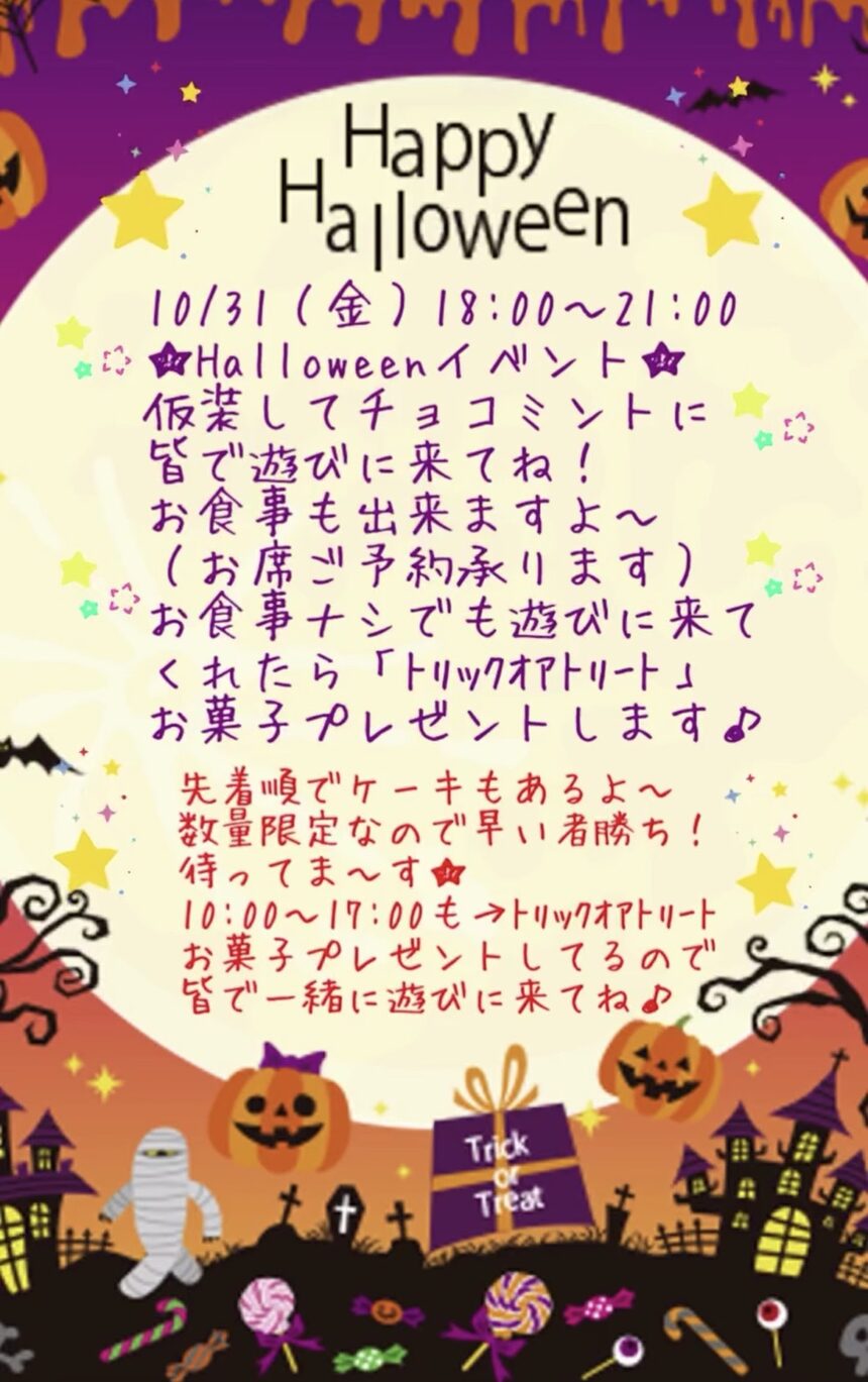 2025年10月31日(金)チョコミントでHalloween イベントを開催します!