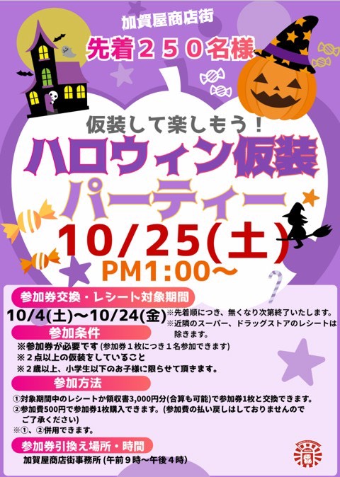 加賀屋商店街で2025年10月25日(土)にハロウィン仮装パーティーが開催されます!