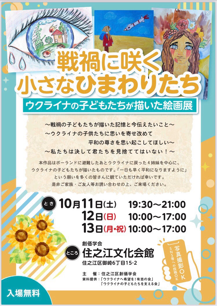 ウクライナの子どもたちが描いた絵画展 2025年10月11日(土)12(日)13(月)
