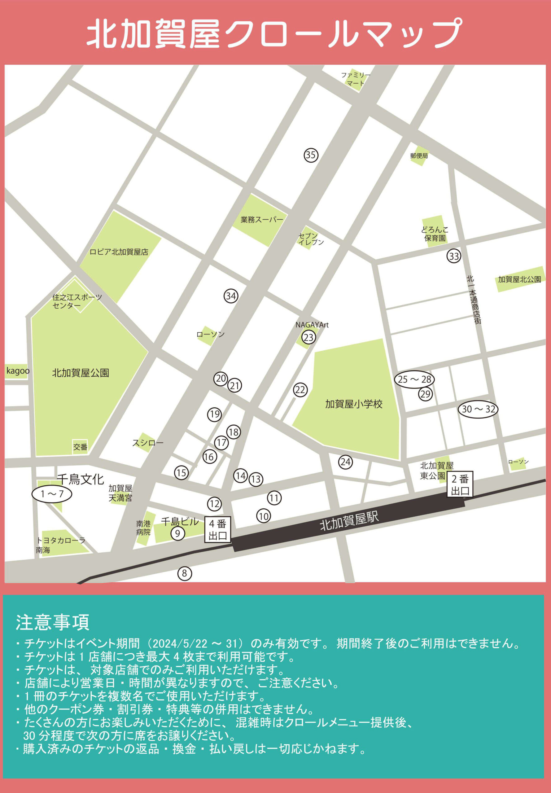 北加賀屋の店舗をチケット制で巡る回遊型イベント「北加賀屋クロール vol.2」を2024年5月22日(水)から31日(金)の10日間 開催します。