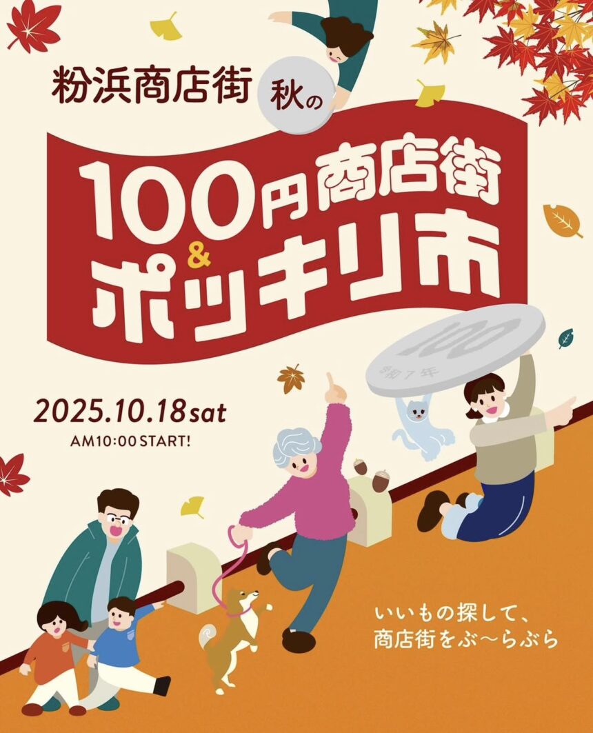 粉浜商店街では春に続いて、秋の「100円商店街&ポッキリ市」を開催いたします。