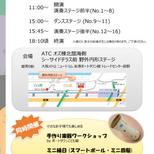 咲洲地区の学生、生徒、社会人が、吹奏楽、バンドなど、様々なスタイルで音楽を奏でます。皆さんのご家族やお友達、同僚が出演してるかも? 老若男女、どなたでも楽しんでいただけます。一緒に音楽で咲洲を盛り上げましょう♪