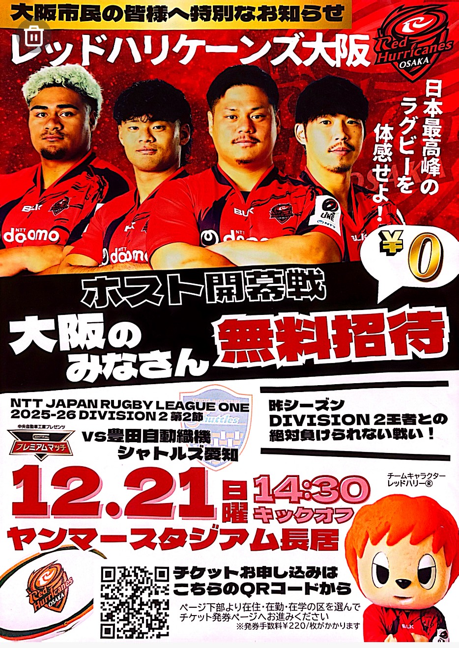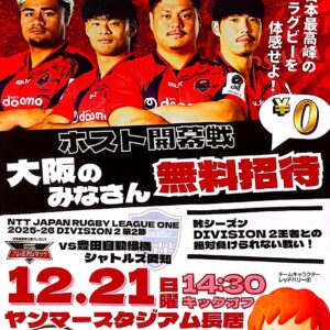 NTT JAPAN RUGBY LEAGUE ONE 2025-26 DIVISION 2 第2節のホストゲーム(豊田自動織機シャトルズ愛知戦)を