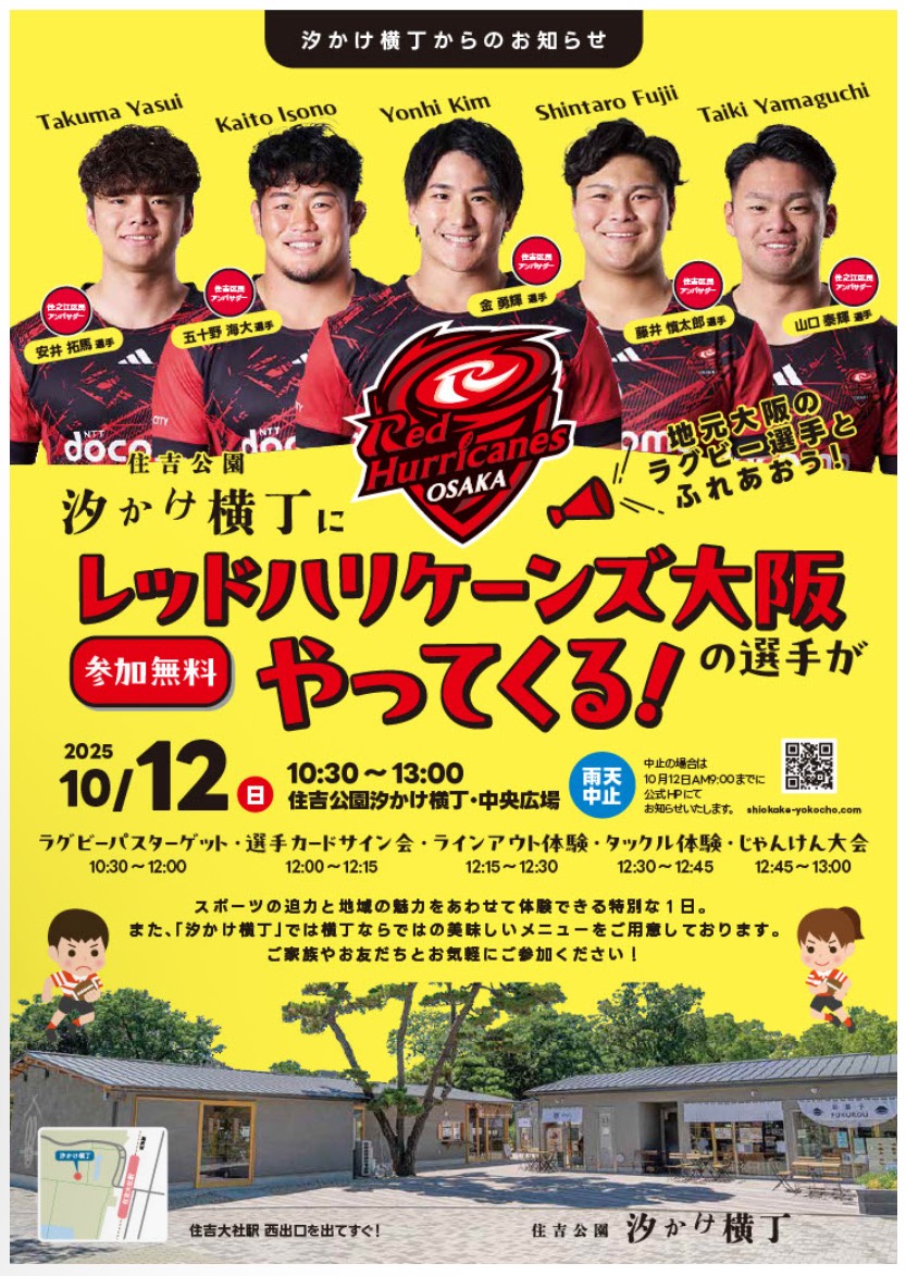 レッドハリケーンズ大阪の選手がやってきます!! 2025年10月12日(日)