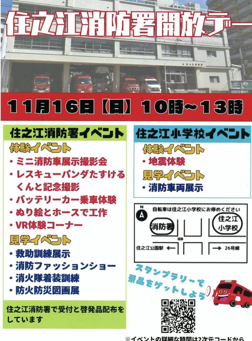 2025年11月16日(日)住之江消防署と住之江小学校で『住之江消防署開放デー』が開催されます!!