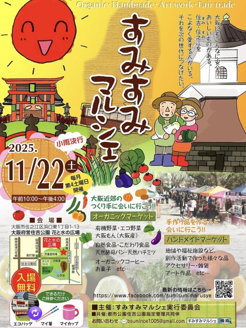伝統ある住吉大社のおひざ元で毎月第4土曜日に開かれるマルシェです。