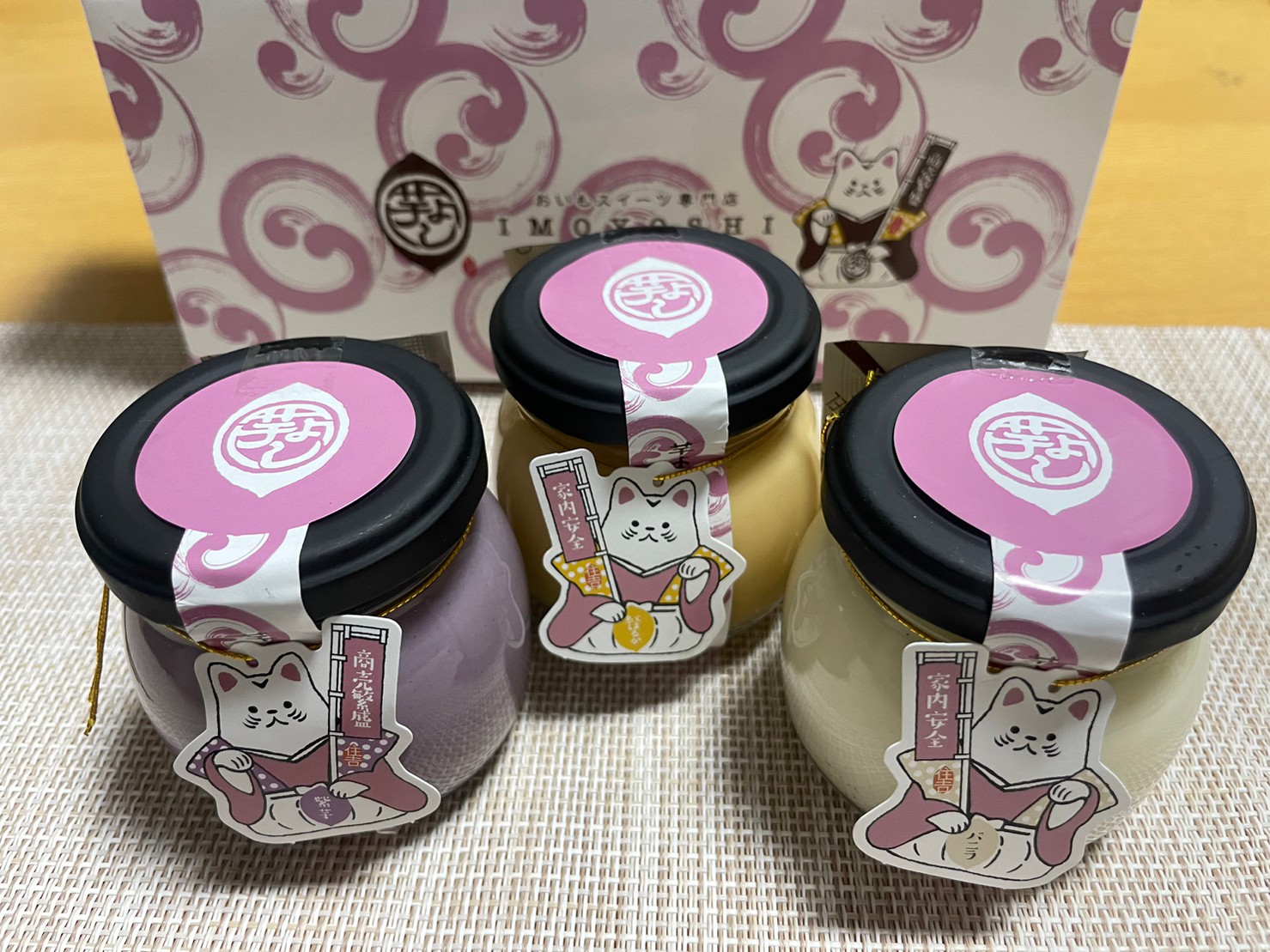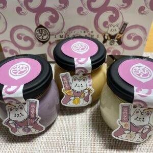 芋よしプリンは、紫いも、バニラ、紅はるかの3種類があります。