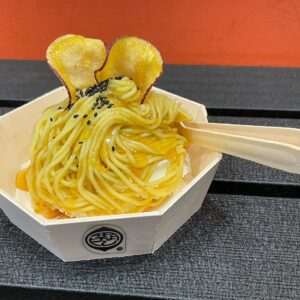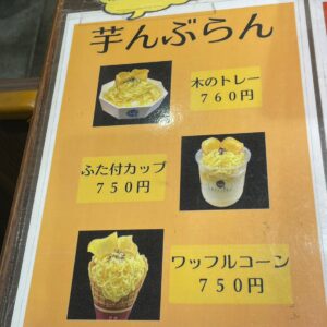 店舗限定で『芋んぶらん』という商品があり、ソフトクリームの上にモンブランのように、絞りたてのお芋のペーストがかかっています。