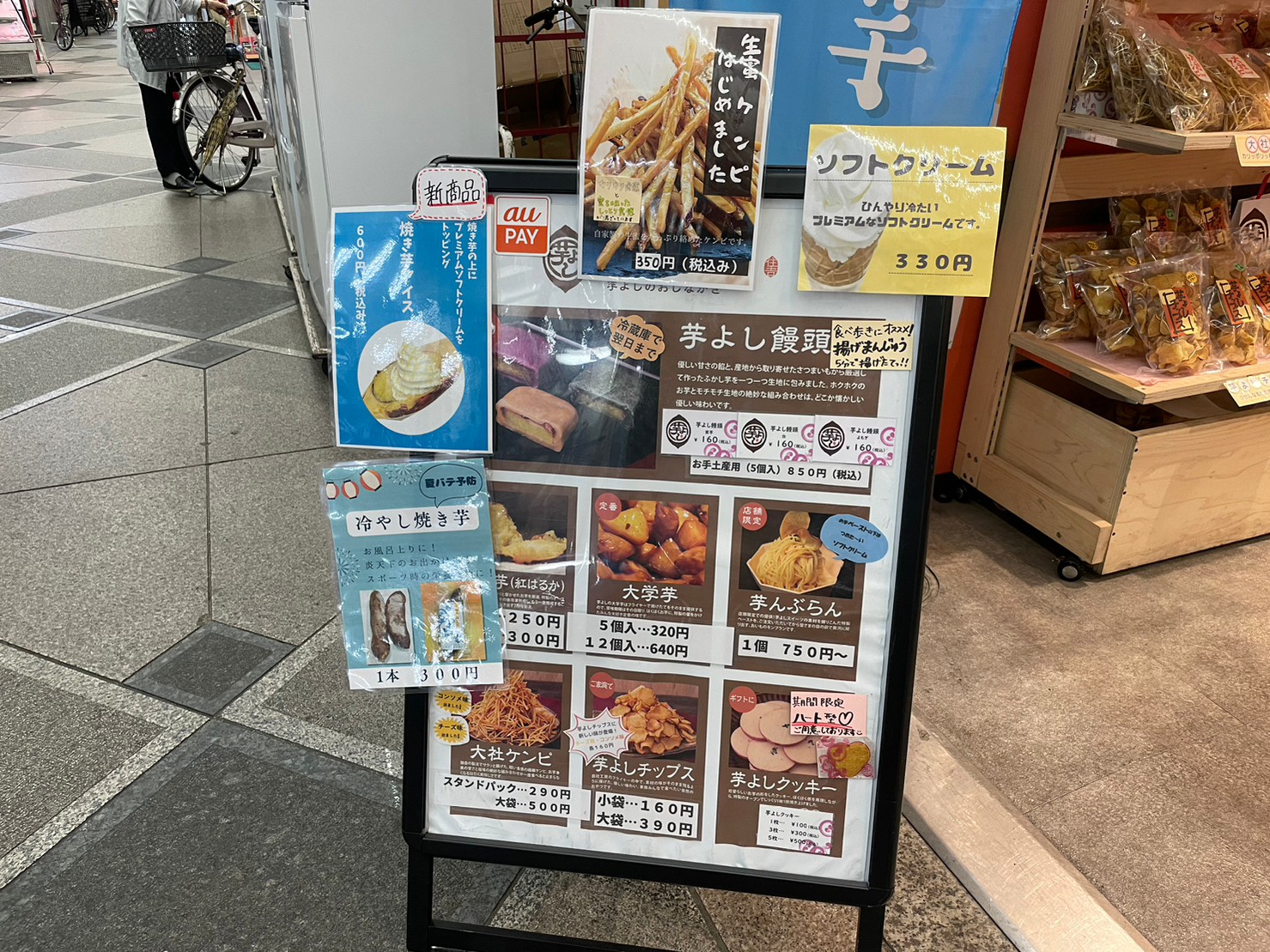 名物の芋よし饅頭の他に、定番の焼き芋や芋けんぴ、芋よしプリンなどさまざまな商品があります。