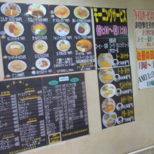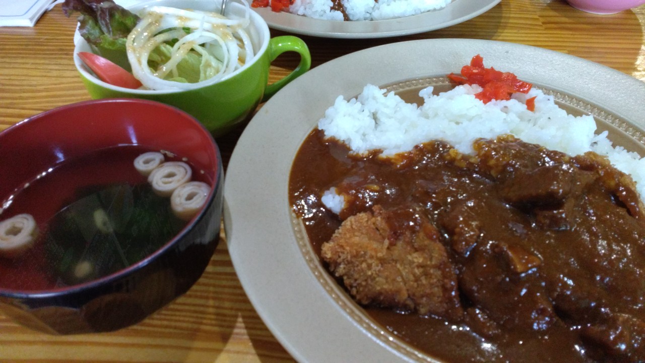 モーニングメニュー、ランチの定食メニュー、飲み物もかなり豊富にある喫茶店です。 店内は広くゆっくりくつろげます。 今回はカツカレーいただきました。 程好いか辛さに大きなカツ。牛すじも入っており美味しいです! サラダとお吸い物が口の中をリセットしてくれるので、ガツガツ食べれました。