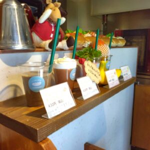 おかずこっぺ、おやつこっぺなど色々なこっぺぱんが楽しめるこっぺぱん専門店。 コーヒー豆やスムージーも置いてあります。 色々なこっぺぱんが並ぶ店内を見るだけでも楽しい!