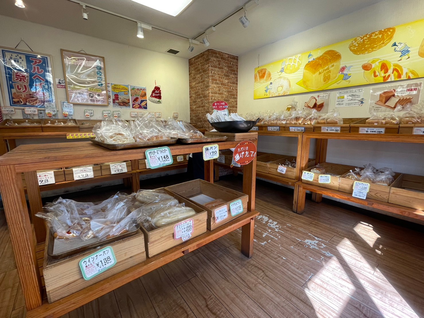 店内には、菓子パンやおかずパンなど様々な種類のパンが並んでいて、商品が届くと、どんどん商品棚に追加されていきます。