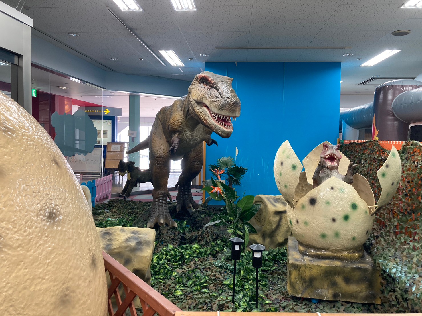 迷路は安心のふわふわ素材。恐竜とのフォトスペースは大迫力!