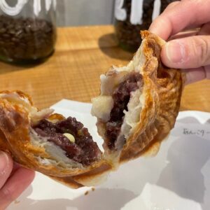 北海道産大納言小豆のあんこが尻尾までギッシリ入っています!一般的な生地と、クロワッサンの生地があります。クロワッサンの生地は、焼きたてでパリッとしていて、バターのいい香りがしてとてもおいしいです!