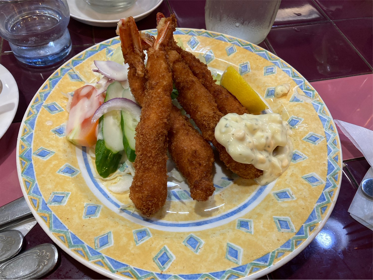 料理は、エビフライやポークロースカツなど、オーダーが入ってから店主が調理してくれます。