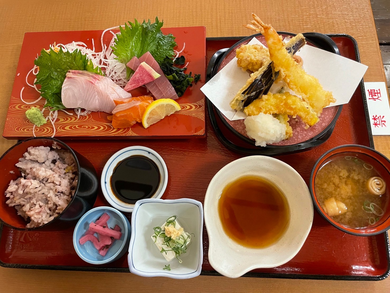 だしの香り高いスープを一口飲むと、体の芯から温まり、リラックスした気持ちがさらに深まりました。