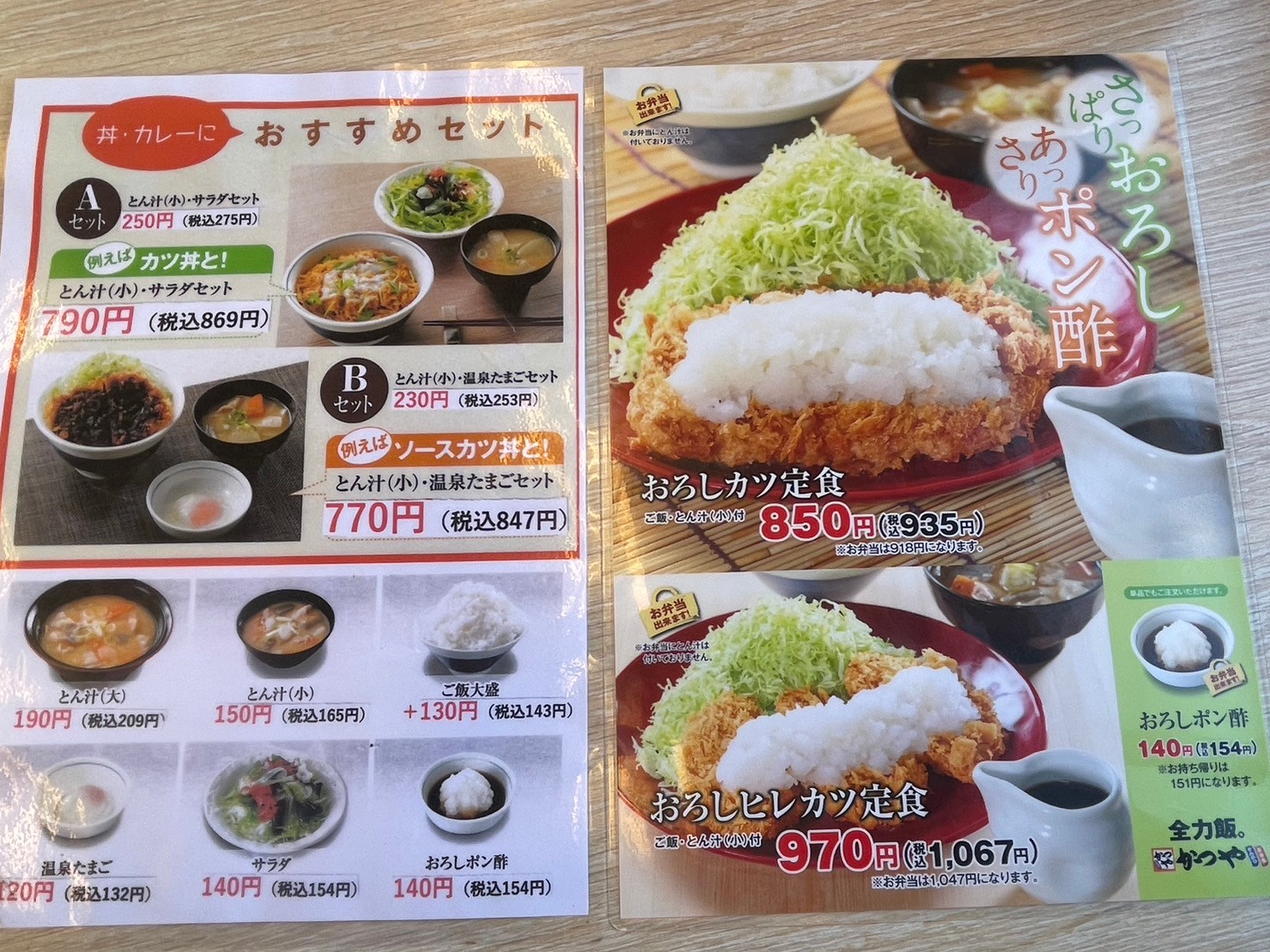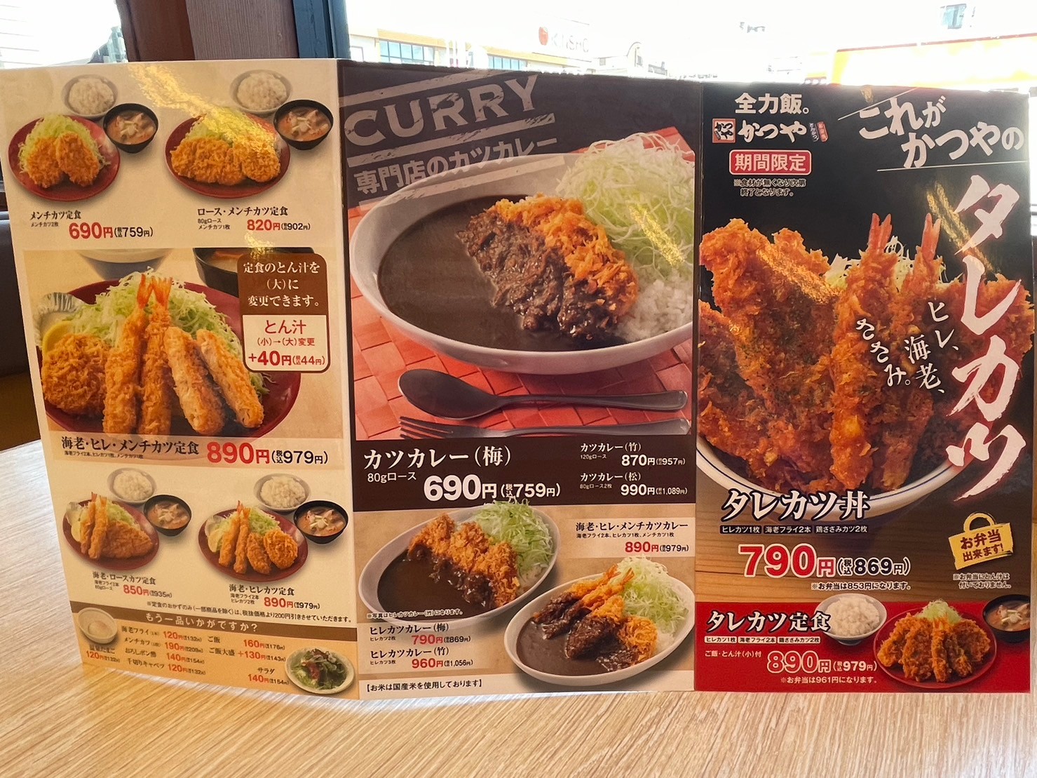 お手頃なお値段で、メニューも豊富なかつやさんです。