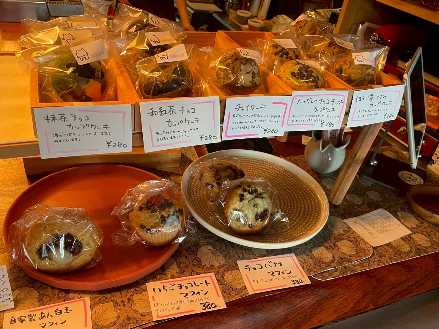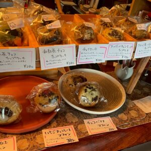 手土産やちょっとした差し入れ、おやつなどにピッタリなかわいい個包装の焼菓子(カップケーキ、マフィン、クッキー、ナッツなど)が豊富にあります。朝の散歩ついでやお出かけ前、駅も近いので出勤前にぜひ行ってみてくださいね!