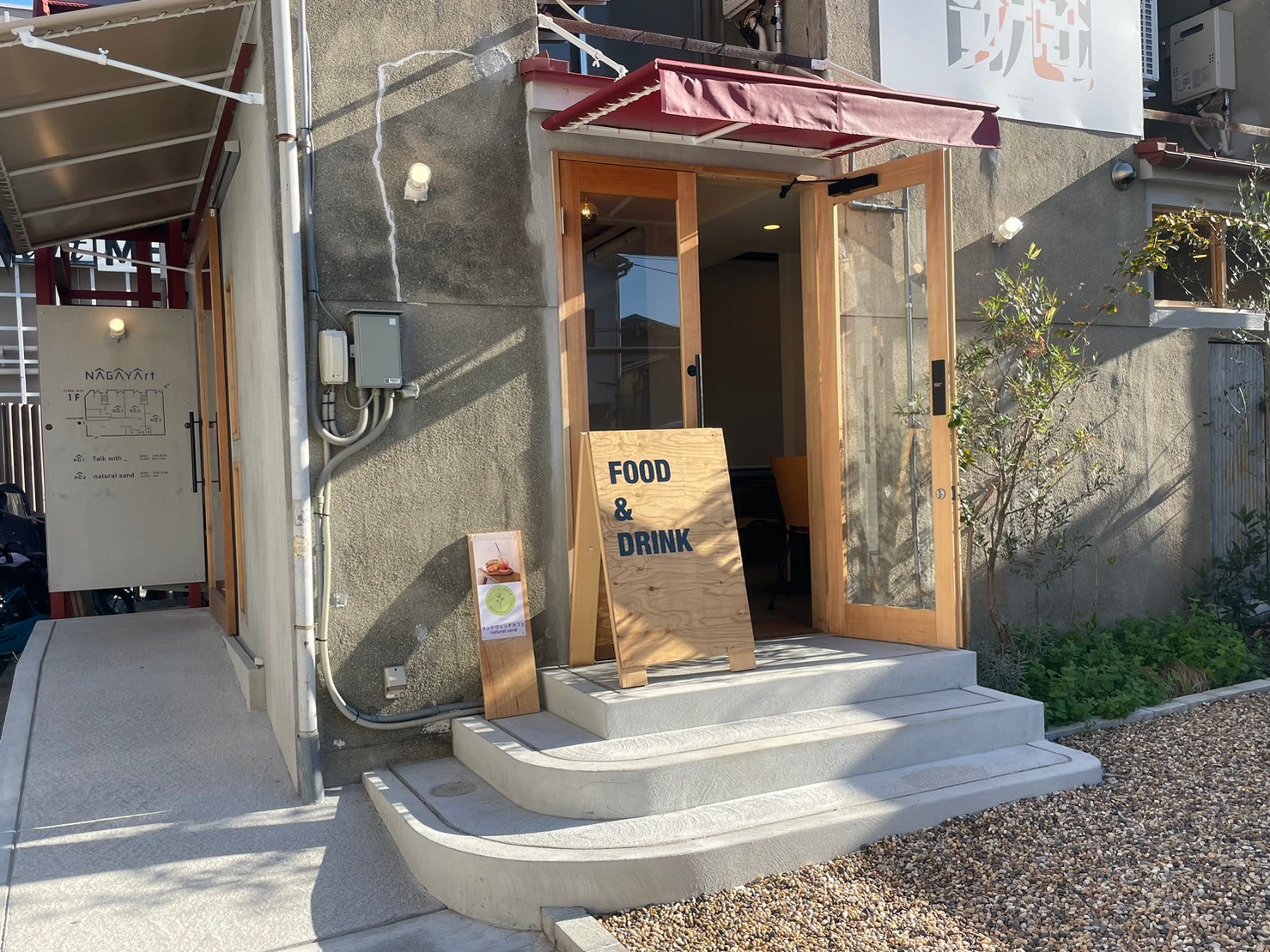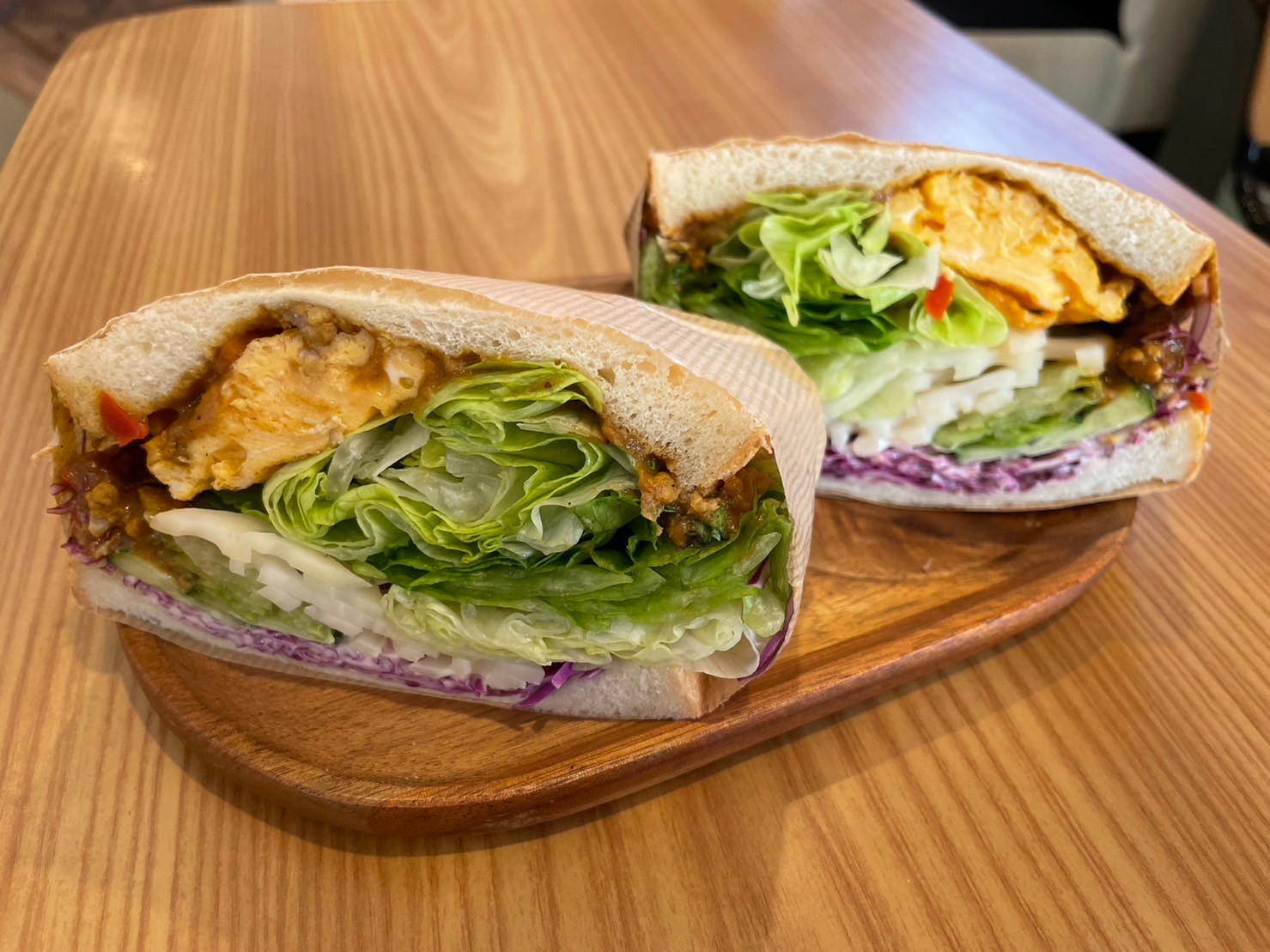 「こんなところにお店が?」と思って外にある看板を見てみると、サンドウィッチのお店とチャイのお店があった。 北加賀屋駅の近くに、長屋をリノベーションしたお店が2023年の夏にできたようだ! 今回は、『natural sand』に行ってみた。 『natural sand』は、野菜がたっぷり入ったサンドウィッチとマフィン、飲み物を販売している。 サンドウィッチは、日によってメニューが異なる。 キーマカレーのサンドイッチの中身は、卵、レタス、きゅうり、紫キャベツ、れんこん、キーマカレーが入っている。れんこんが入っているのが珍しい。 野菜がたっぷり入っていて、サンドウィッチ半分でも十分の満足度だ。 筆者は2人で半分ずつ食べたが、野菜がたっぷりだったので、お腹いっぱいになるボリュームだった。