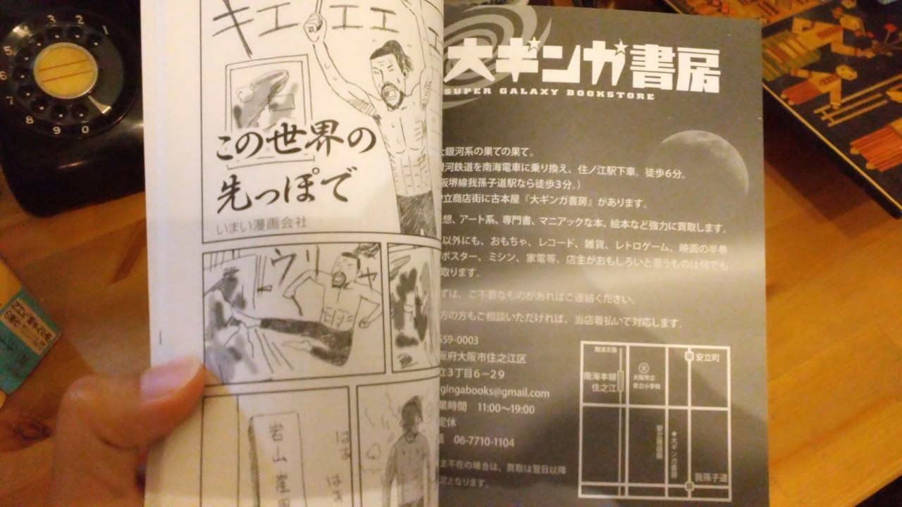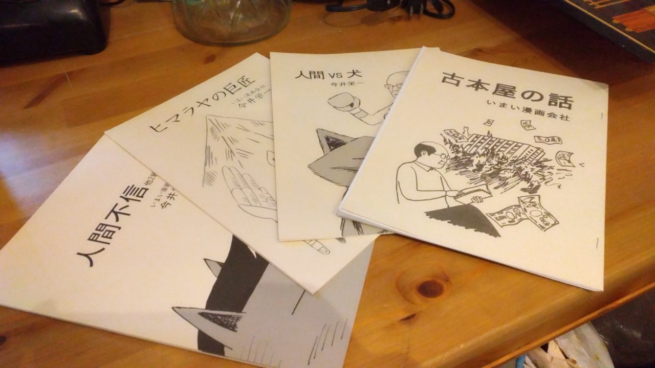 住之江区の安立商店街にある古本屋「大ギンガ書房」の店主今井さん。 表の顔は介護職の仕事をしながら、古本屋の店主もやっている。 そして、もう一つの顔がいまい漫画会社と名乗る「シュールなギャグ漫画を描く人」である。
