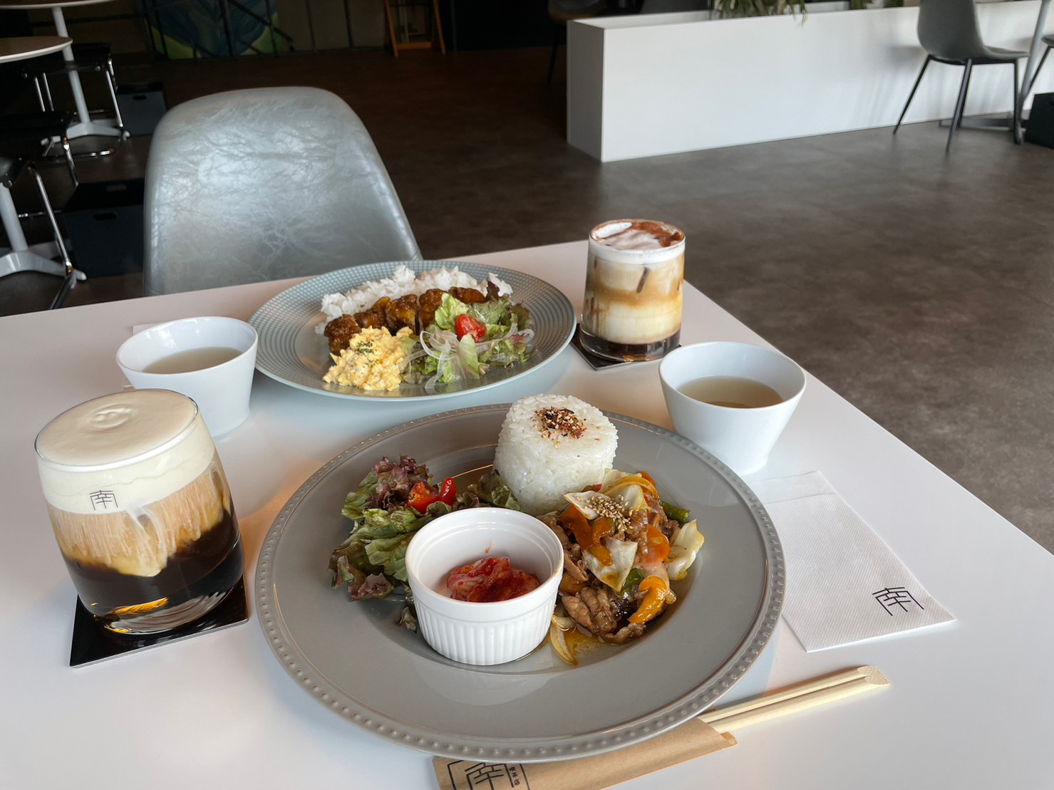 店名が珍しく、どういう意味があるのか気になり、店員さんに店名の由来を尋ねた。 オーナーが韓国の方で、その方の名前からNams Cafeという店名になったそうだ。 店員さんの対応も丁寧で、その他に気になることがあれば、InstagramのDMから連絡すれば、対応してくれるそうだ。 実際にDMをすると、細かな質問にまで丁寧に返信してくれたので、とてもありがたかった。 1階〜2階まであり、好きな場所でゆっくりランチやディナーを楽しめる。
