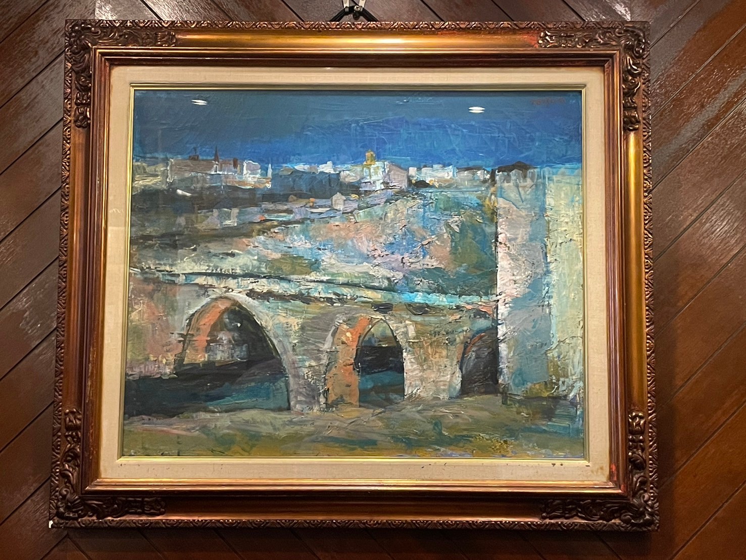 店内に飾ってあるパリの橋の油絵は、今は亡き、綱島先生が店主の両親にプレゼントされたもの。来店時には是非見ていただきたい。