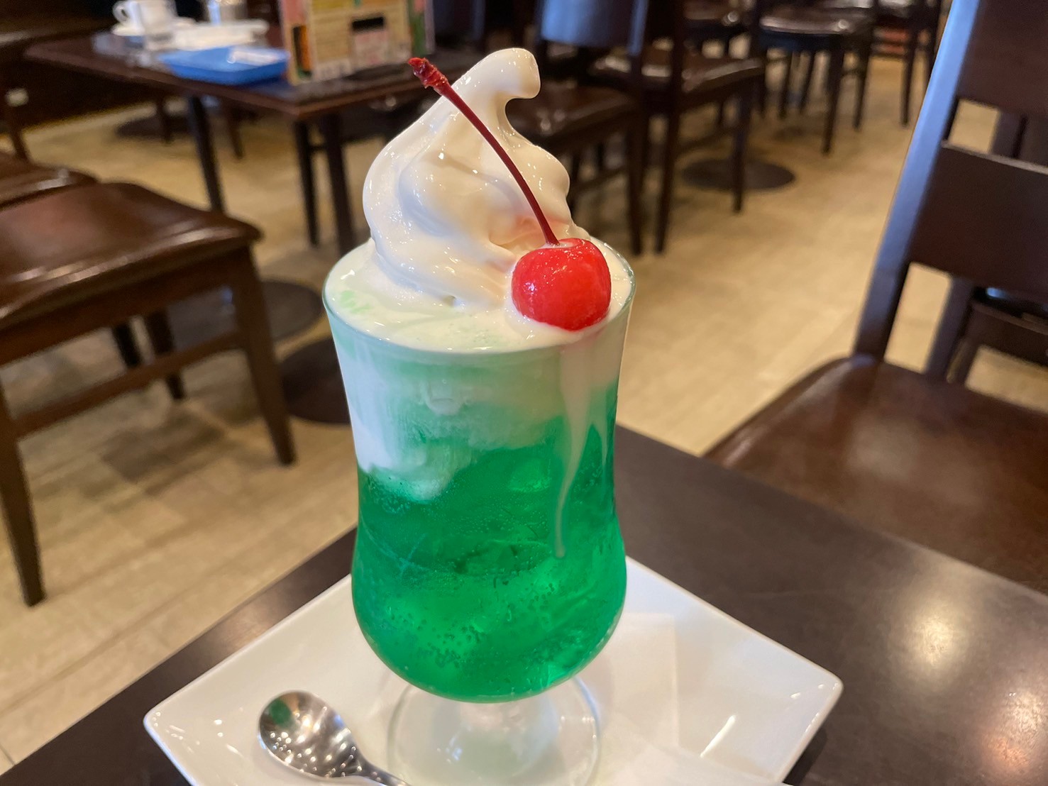 クリームソーダは、見た目から懐かしい。ソフトクリームは北海道生乳を使用しているので、濃厚な味わいだ。