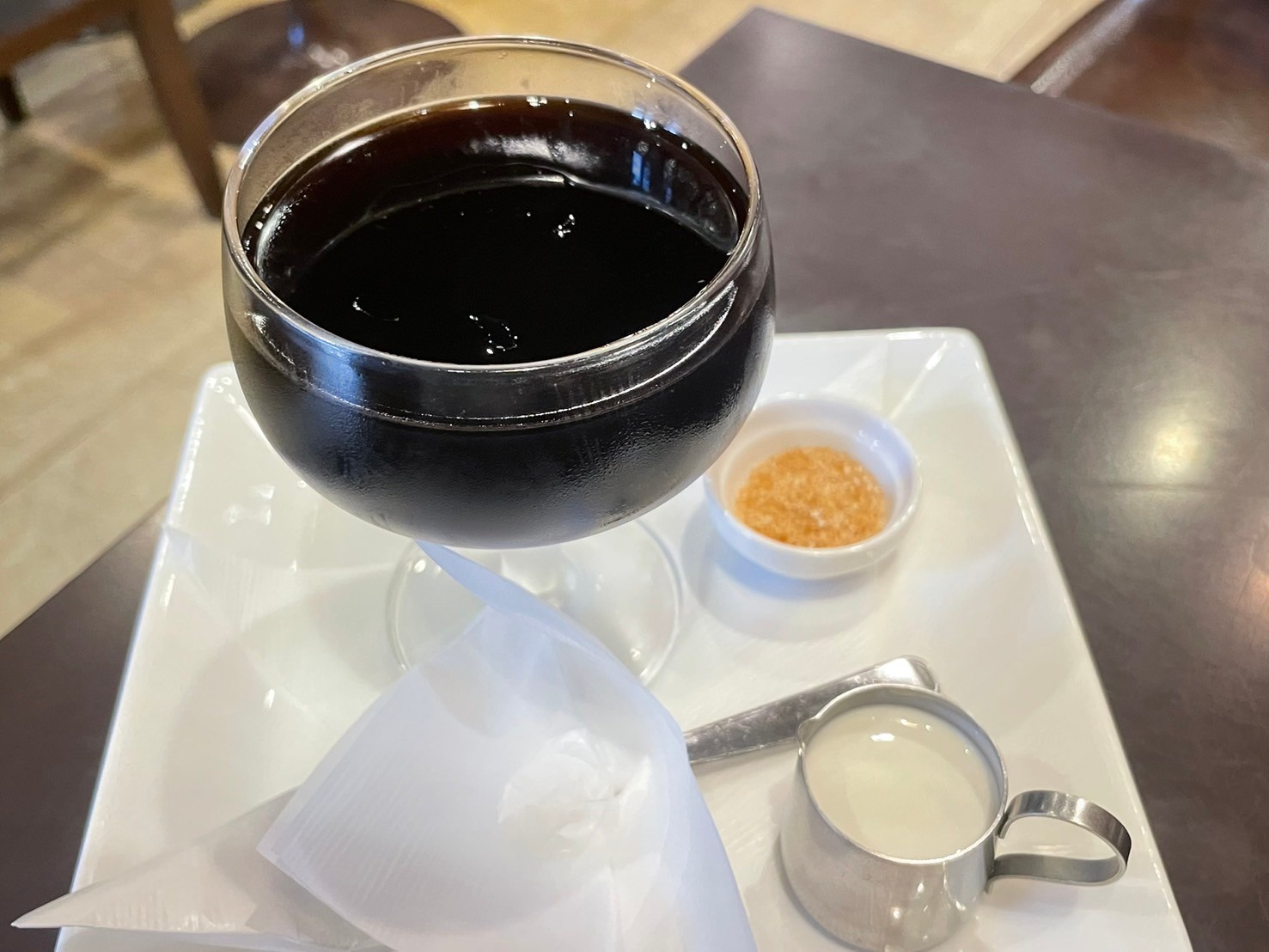 コーヒーゼリーは、“特製魔法のミルク”を入れると、甘くなり、カラメルシュガーも付いてるので、シャリっとした食感を楽しめる。