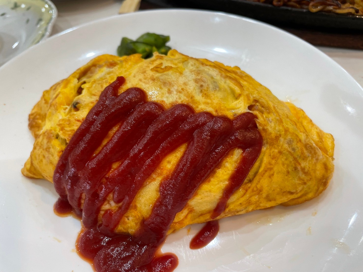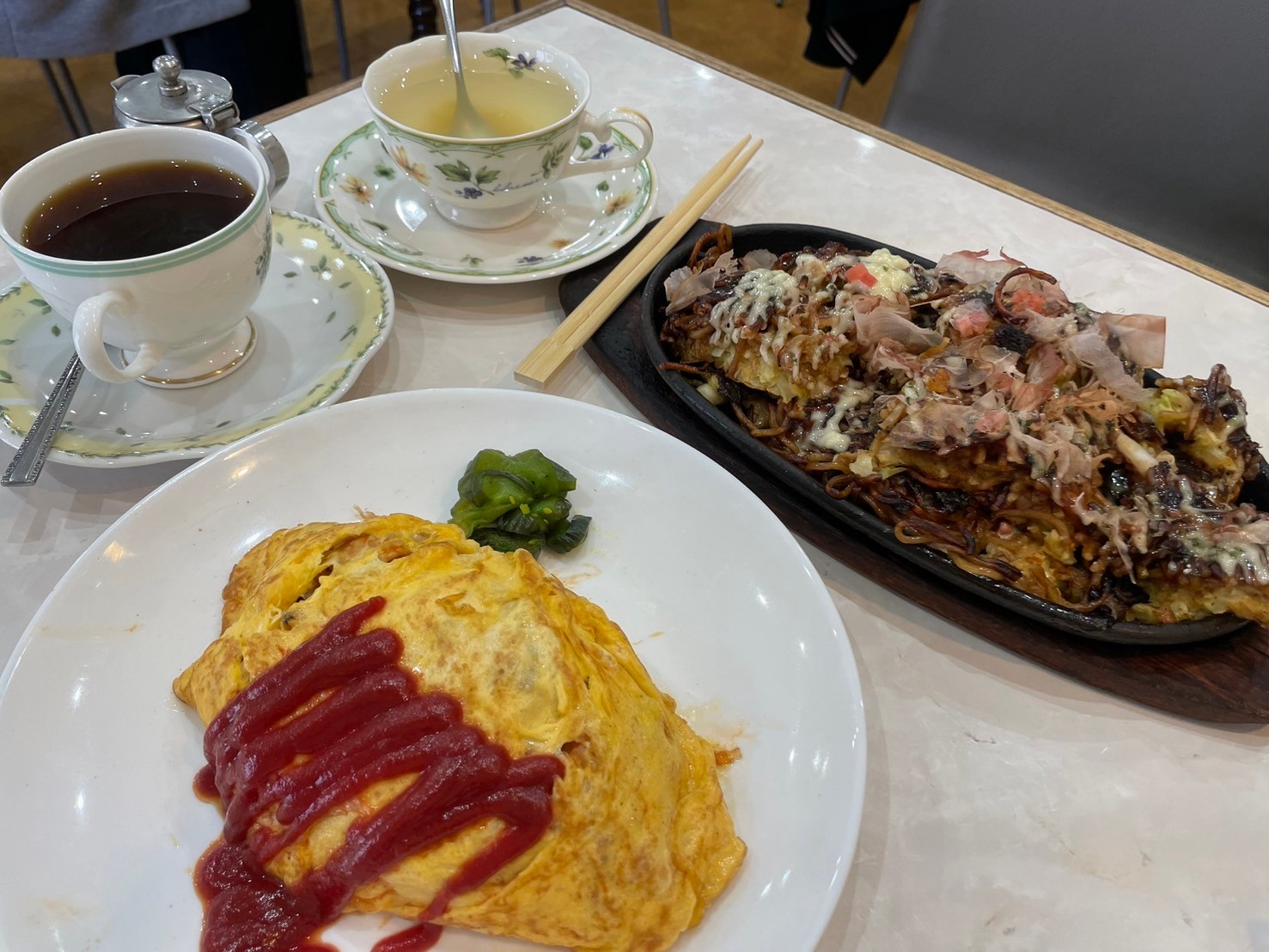 喫茶店でお好み焼きを楽しめることはなかなかないので、今回は、お好み焼きと喫茶店の定番メニューのオムライスを注文することにした。